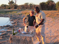 Savute Safari Lodge is currently my very Hot Favorite Botswana property. Our managers, MC & Michele, were 1st class and treated us royally, as did our guide, Baba. He kept is entertained and shared so much with us. We drove ALL the way around the Savute Marsh..there is so much water about currently…..and the wildlife is plentiful…Of course sundowners overlooking a beautiful waterhole in the bush were a wonderful memory, as well. Why is it that the sunsets in Africa are always so stunning and the colors so vibrant? That golden glow!