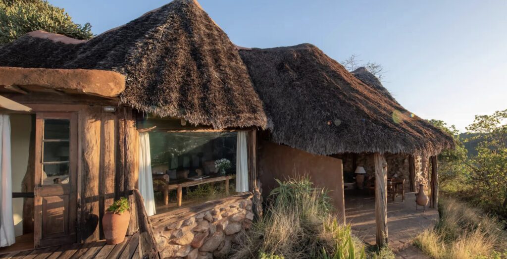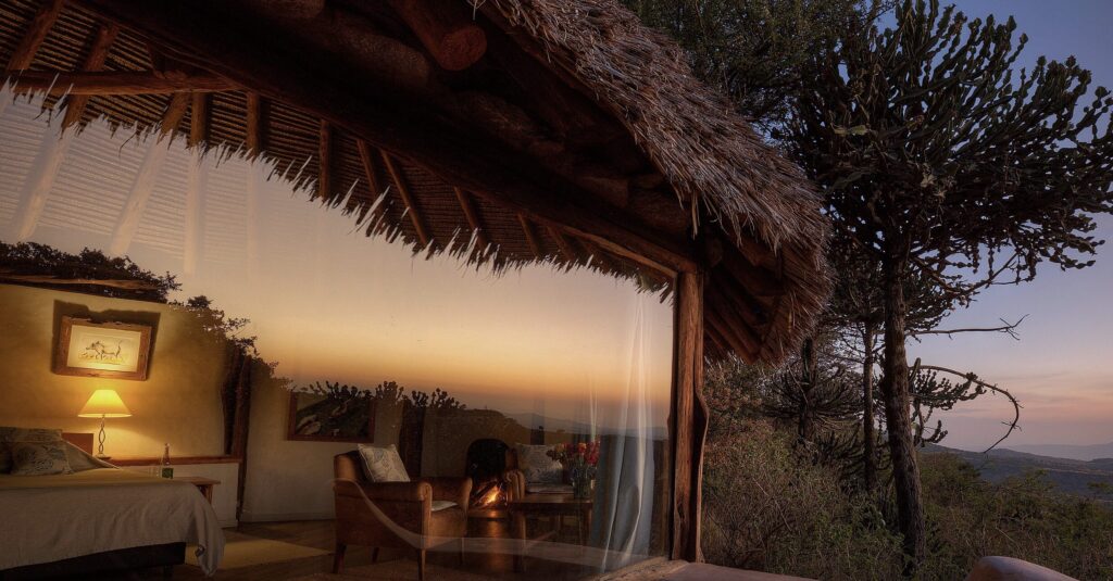 Located on a range of hills that form the western limits of Africa’s Great Rift Valley, the lodge offers spectacular views over the vastness of Africa.