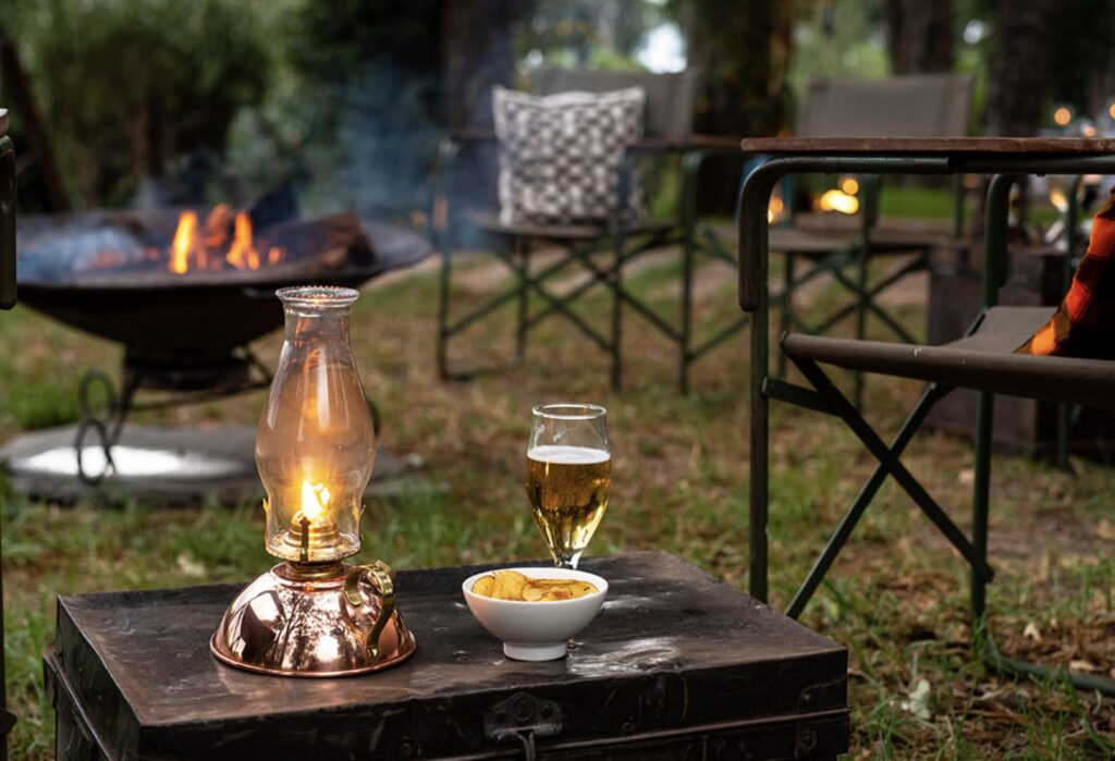 The mess tent is the heart of the camp, featuring a cozy lounge, dining area, bar, fireplace, and forest-view deck. Guests enjoy exceptional game viewing, including regular sightings of big cats and the resident Offbeat Pride of lions, all guided by expert trackers who know their stories well.