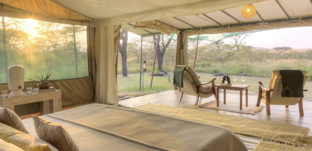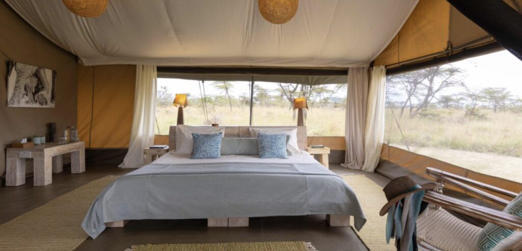 A proud member of both Relais & Châteaux and the Réserve-Collection by Great Plains, the camp blends seamlessly into its natural surroundings, offering sweeping views of the plains and a refined, low-impact design. Guests can expect exceptional game viewing, including front-row access to the Great Migration, with minimal tourist density.