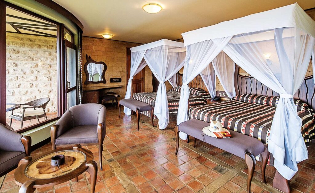 Set on 200 acres of private land, the lodge exudes rustic charm and rests at the base of Mount Kilimanjaro—Africa’s tallest and most iconic snowcapped peak, rising nearly 6,000 meters. This breathtaking region of Kenya famously inspired Ernest Hemingway’s 1930s classics The Snows of Kilimanjaro and The Short, Happy Life of Francis Macomber, both later adapted into acclaimed films featuring legendary actors. The surrounding wilderness remains rich with wildlife and stretches seamlessly to Amboseli National Park, just a short 20-minute drive away.