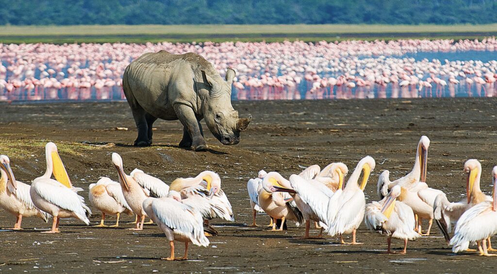 The lodge also overlooks Lake Nakuru and its surrounding National Park, one that is a paradise for bird watchers and wildlife lovers alike. Lake Nakuru National Park is mainly a wooded and bushy grassland with a wide ecological diversity and characteristic habitats that range from the lake waters to the escarpment and ridges.